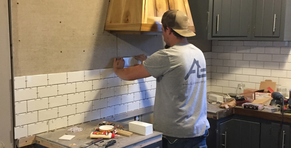 The next day, March 14, the snap floor was laid - in a day! Addison designed the hood vent in place using recycled wood that matched our kitchen table and a few weeks later with load of gratitude, he and his friend installed the kitchen’s subway tile backsplash.